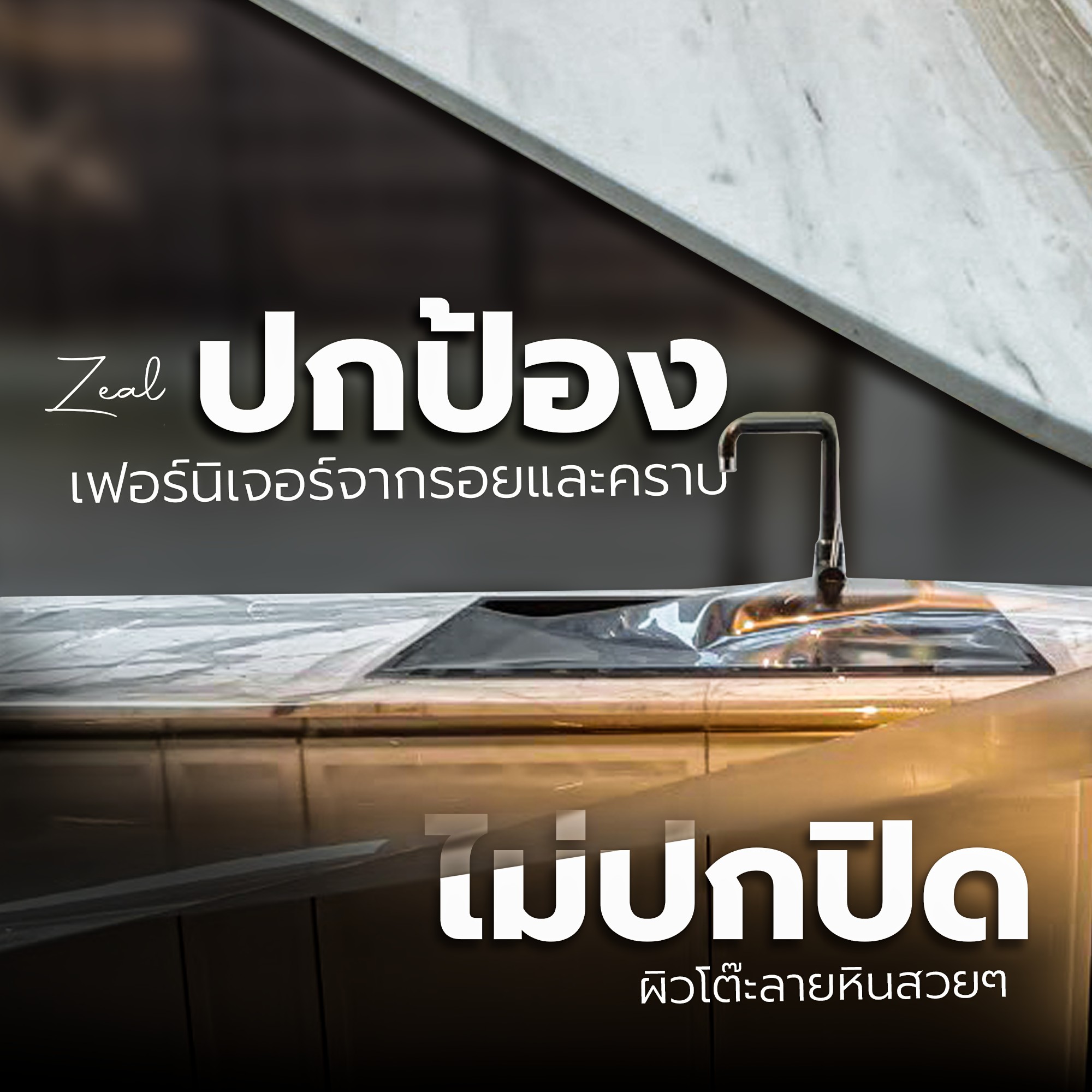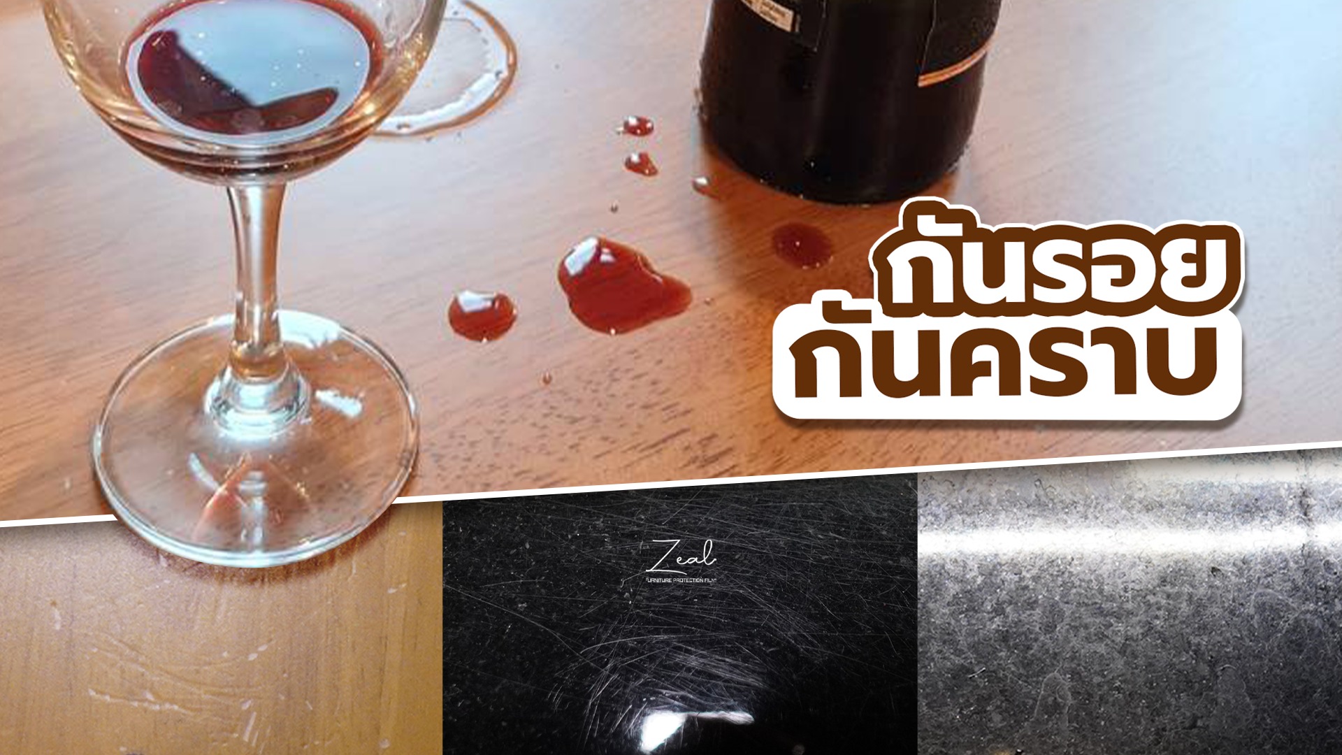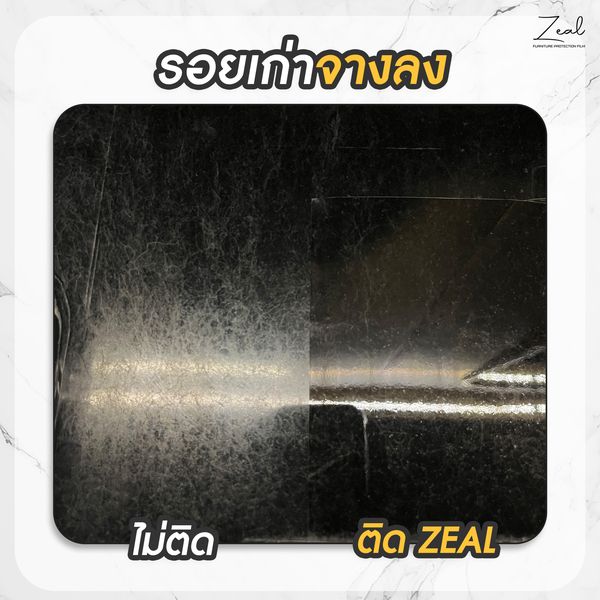 ฟิล์ม Zeal ถูกออกแบบมาเพื่อเฟอร์นิเจอร์โดยเฉพาะ สามารถติดได้กับวัสดุหลากหลาย เช่น โต๊ะไม้ โต๊ะหิน สแตนเลส และกระจก โดยฟิล์มและกาวที่ใช้ถูกพัฒนาให้บอบบางต่อพื้นผิวเฟอร์นิเจอร์ ช่วยปกป้องได้อย่างปลอดภัยโดยไม่ทำลายพื้นผิว พร้อมทั้งป้องกันคราบน้ำ คราบด่าง รอยขีดข่วน สารเคมี และช่วยกันความร้อนได้อย่างมีประสิทธิภาพ ช่วยรักษาสภาพของเฟอร์นิเจอร์ให้สวยงามและคงความงามได้อย่างยาวนาน