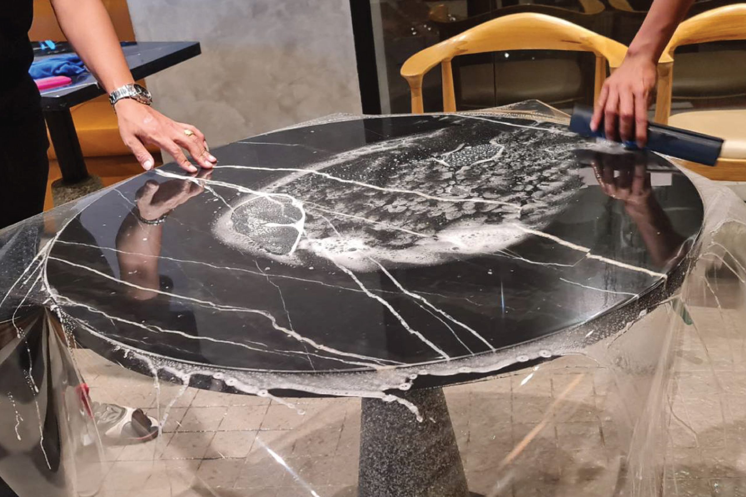 *สำหรับหินอ่อนแท้ที่ไม่ได้เคลือบผิว อาจมีเม็ดหินติดออกมาเมื่อลอกฟิล์ม